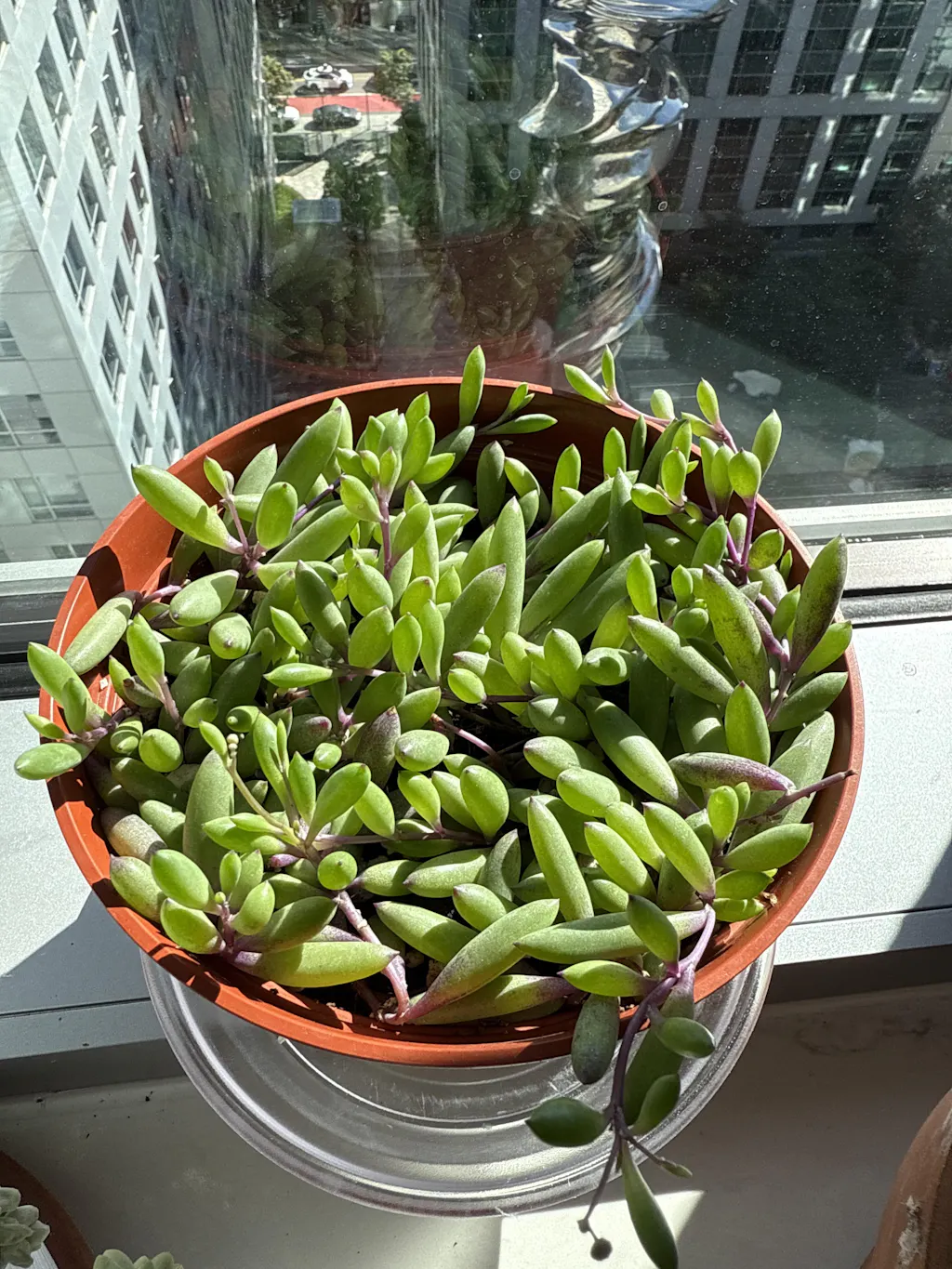 Add a pop of color and a touch of whimsy to your plant collection with the striking Ruby Necklace succulent. Known for its vibrant, trailing stems that range from green to deep ruby purple, this low maintenance beauty is perfect for hanging baskets, shelves, or sunny windowsills.